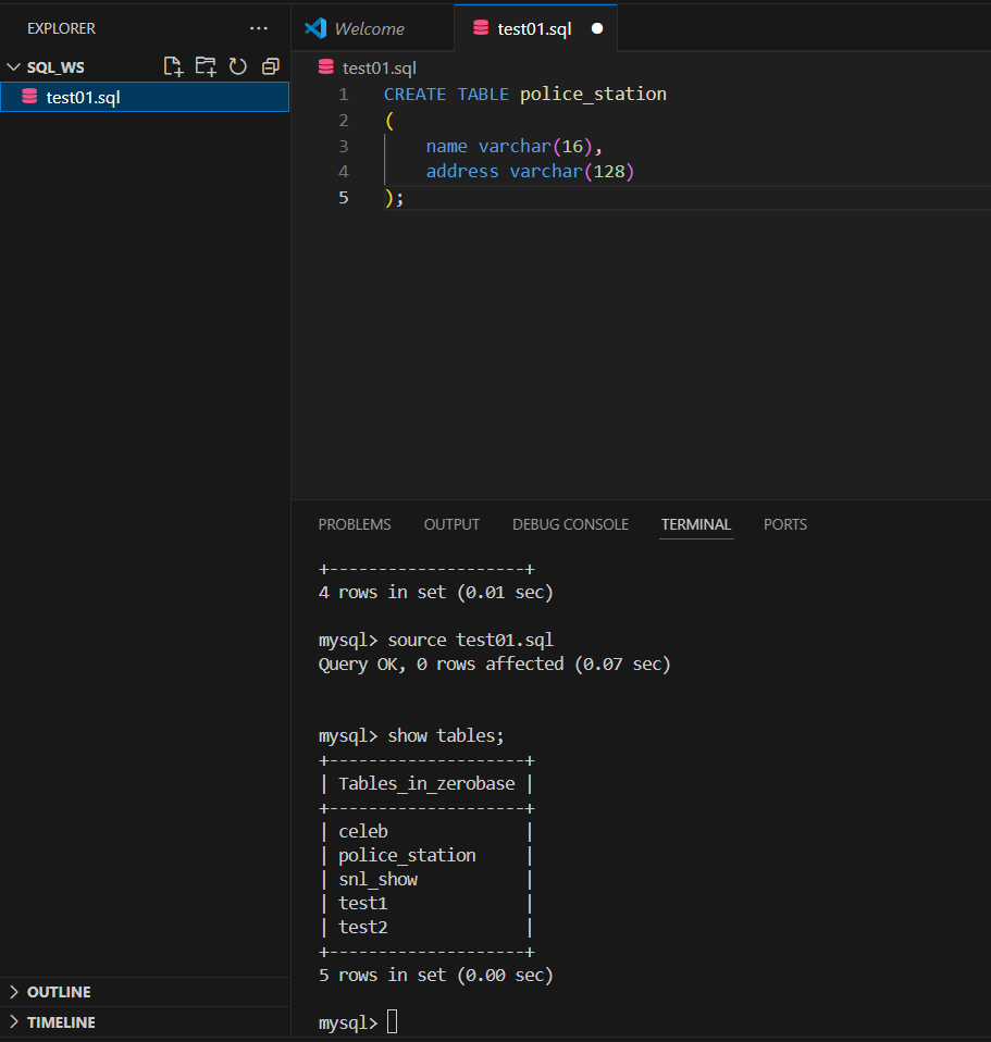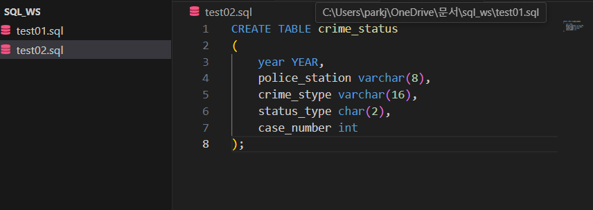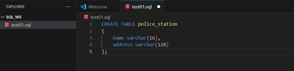 VScode 실행 후 test01.sql 파일 만들기