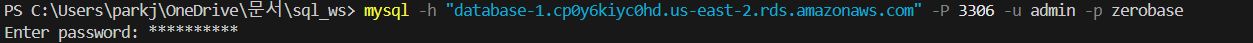 터미널에서 AWS database의 페이지로 접속하기