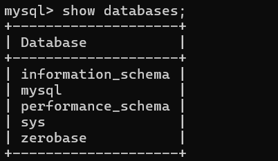 외부 계정으로 미리 만들어 두었던 zerobase데이터베이스에 접속