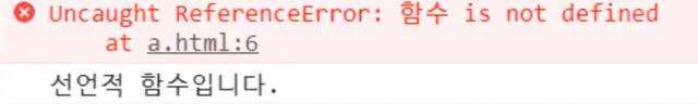 선언적 함수는 무조건적으로 전체 코드를 실행하기 전에 만들어지고 익명함수는 코드를 하나씩 실행하면서 만들어진다는 걸 유추할 수 있따.