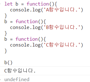 익명함수는 변수와 같기에 코드가 위에서 아래로 읽히며 함수가 만들어진다.
