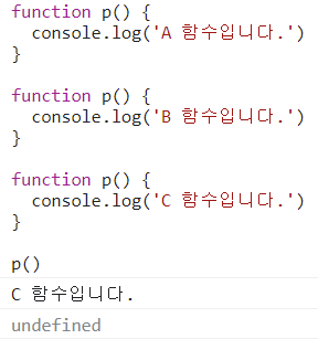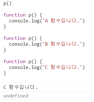 선언적 함수도 위에서 아래로 흘러가듯이 C함수입니다. 가 출력이 된다.