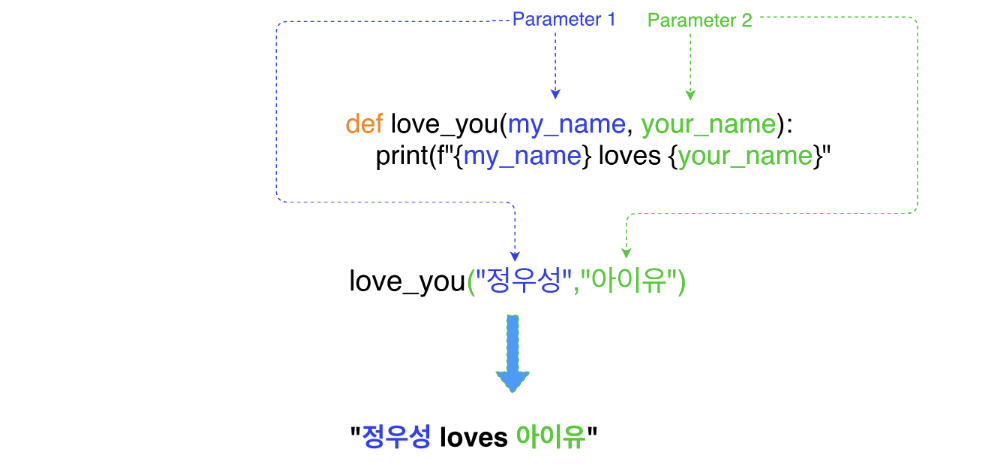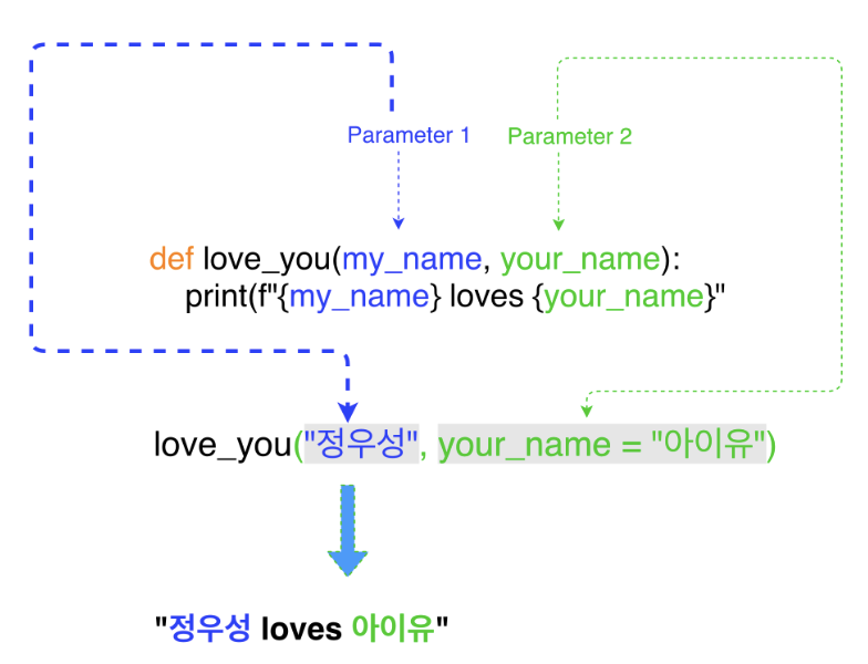 def love_you(my_name = "정우성", your_name):