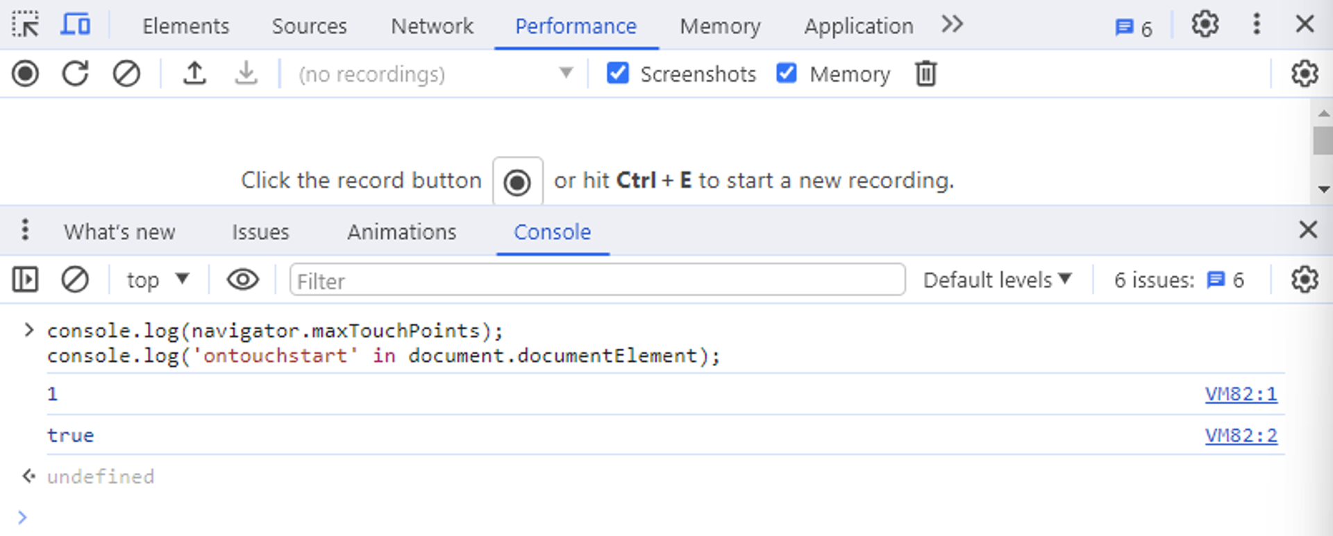 console.log(navigator.maxTouchPoints); // 최대 터치 포인트 수 확인
