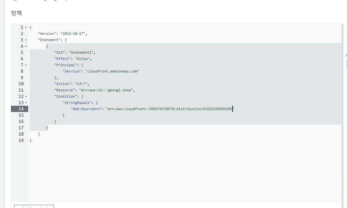 "AWS:SourceArn": “여기에 cloud front arn 넣어야함"
