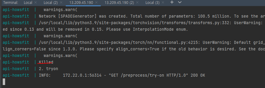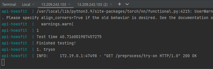라이트세일은 GPU를 사용하지못해 전처리 과정 및 가상피팅 과정이 너무 오래걸린다는 문제점을 발견했다. nvidia-Dokcer와 AWS의 GPU가 사용 가능한 EC2를 사용해 해결할 수 있다고 생각했지만, 비용적인 문제와 프로젝트 기간이 끝나가는 시점이기 때문에 현재 상황에서 프로젝트를 마무리 하려 한다.