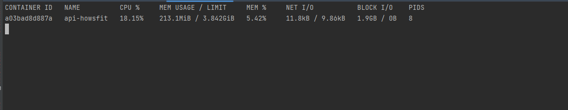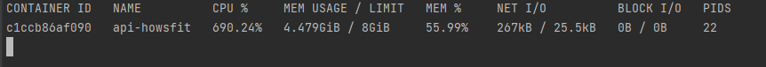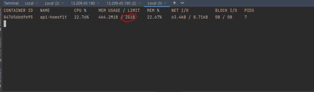 docker-compose.yml 메모리를 8GB로 제한 // 메모리 사용량을 확인했다.
