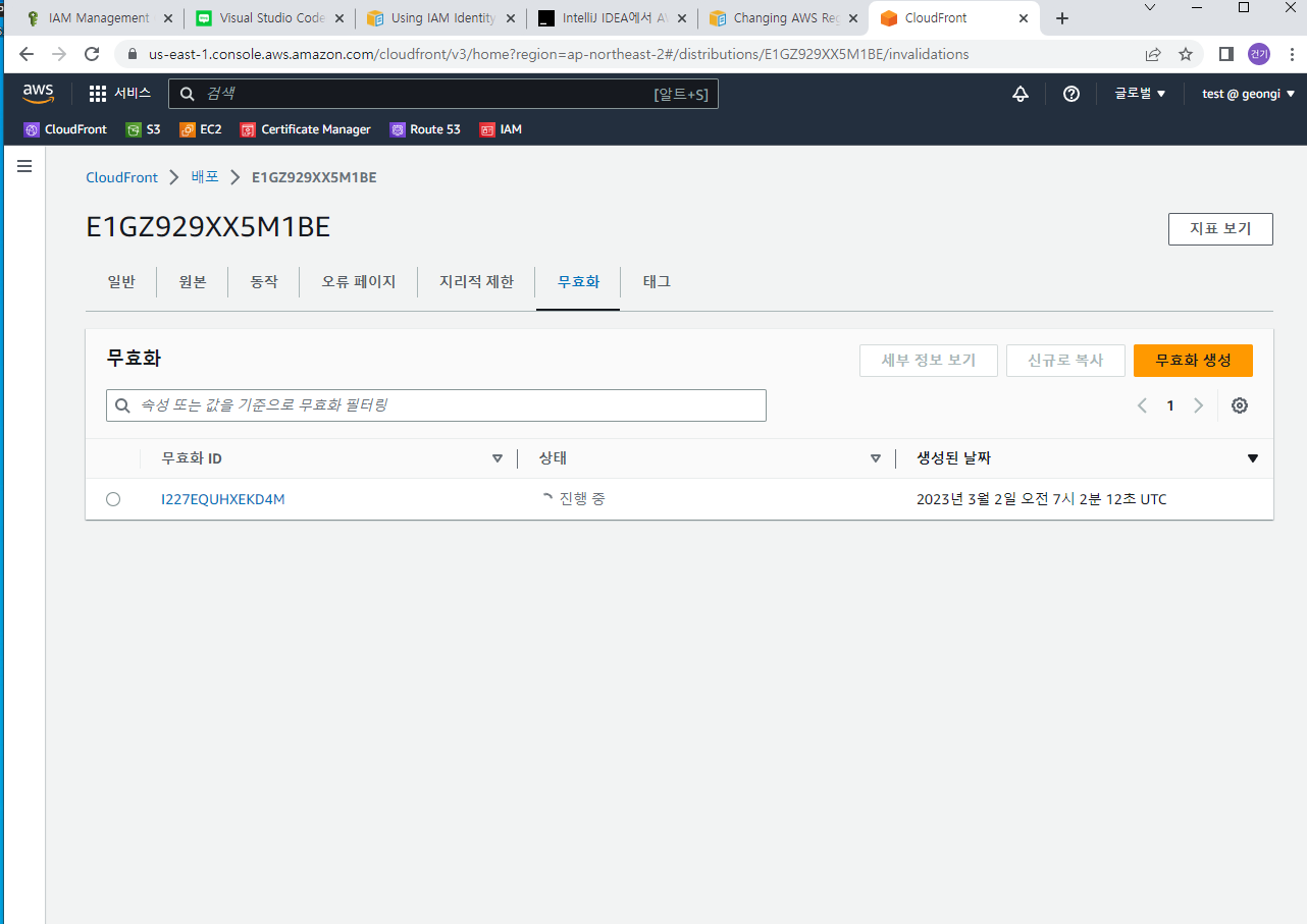 cloud front에서 무효화 에서 무효화 생성 → /index.html (바꾼거 바로 적용 시키고 싶으면)