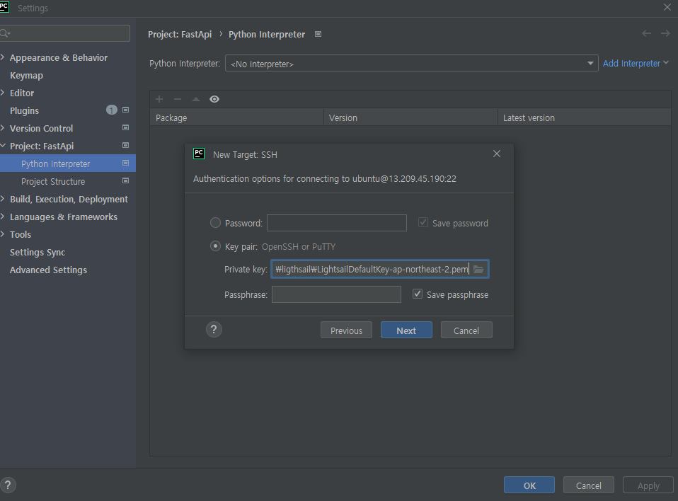 파이참과 라이트세일을 연동하기 위한 과정은 다음과 같다.