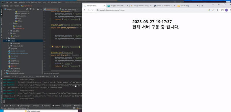 현재 HR-VITON 서비스가 AWS통해 배포 가능도록 시도 중이다.