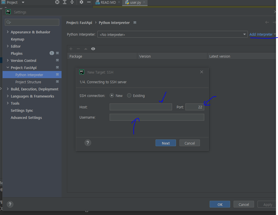 파이참 interpreter를 SSH로 연동한다.