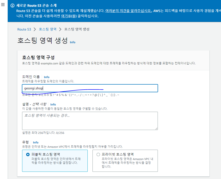 호스팅 영역 생성