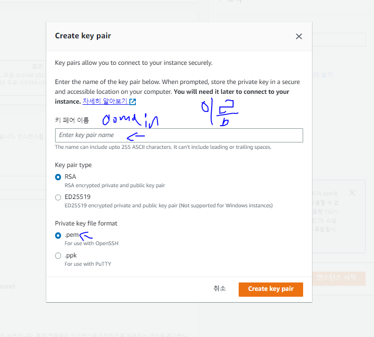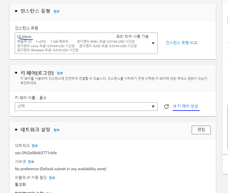 프리티어 사용 중이므로 t2.micro를 사용했다.