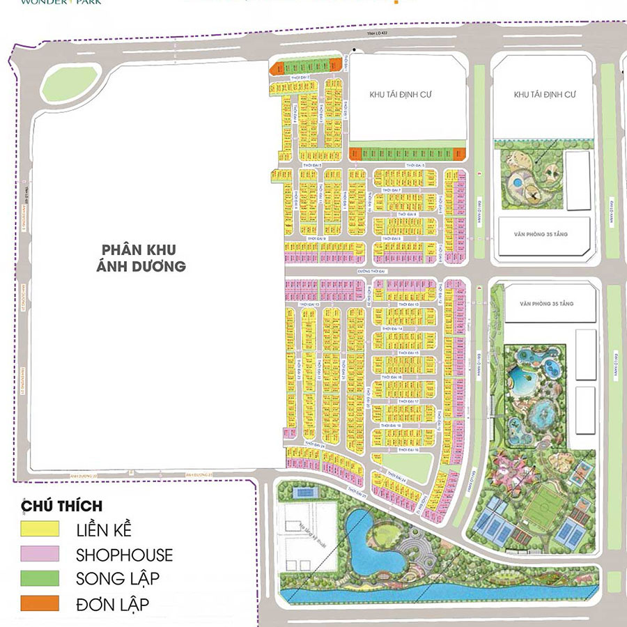 Dòng sản phẩm nổi trội ở phân khu này là dòng sản phẩm Shophouse Vinhomes Wonder Park và liền kề Vinhomes Wonder Park