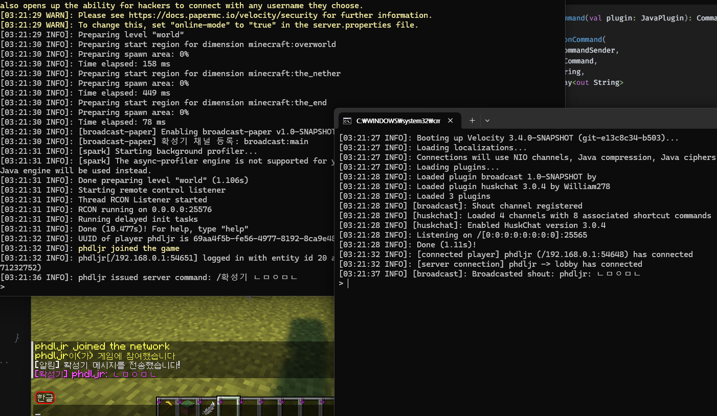 멀티 서버에 접속한 모든 사용자에게 사용자의 메세지를 전달하는 확성기 기능을 가진 마인크래프트 플러그인을 개발하게 되었다.