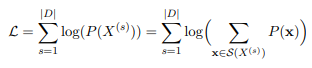 단어사전 B가 주어졌을 때 subword 발생 확률 는 다음의 marginal likelihood을 최대화하는 EM 알고리즘을 통해 산출할 수 있습니다. 이때, 는 hidden variable로 간주됩니다.