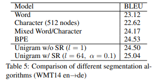 그러므로 segmentation 확률 을 사용하는 subword regularization에 BPE를 적용하는 것은 효과적이지 않을 수 있습니다.