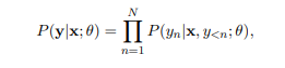 이므로 NMT 모델이 타겟 문장의 확률을 계산하는 식은 다음과 같습니다.