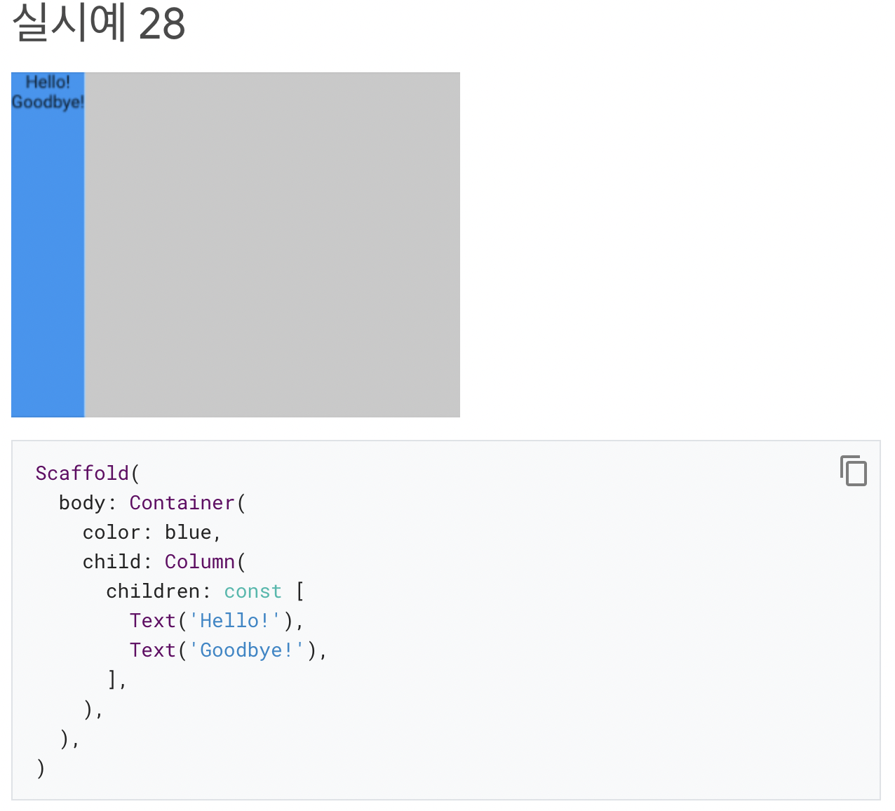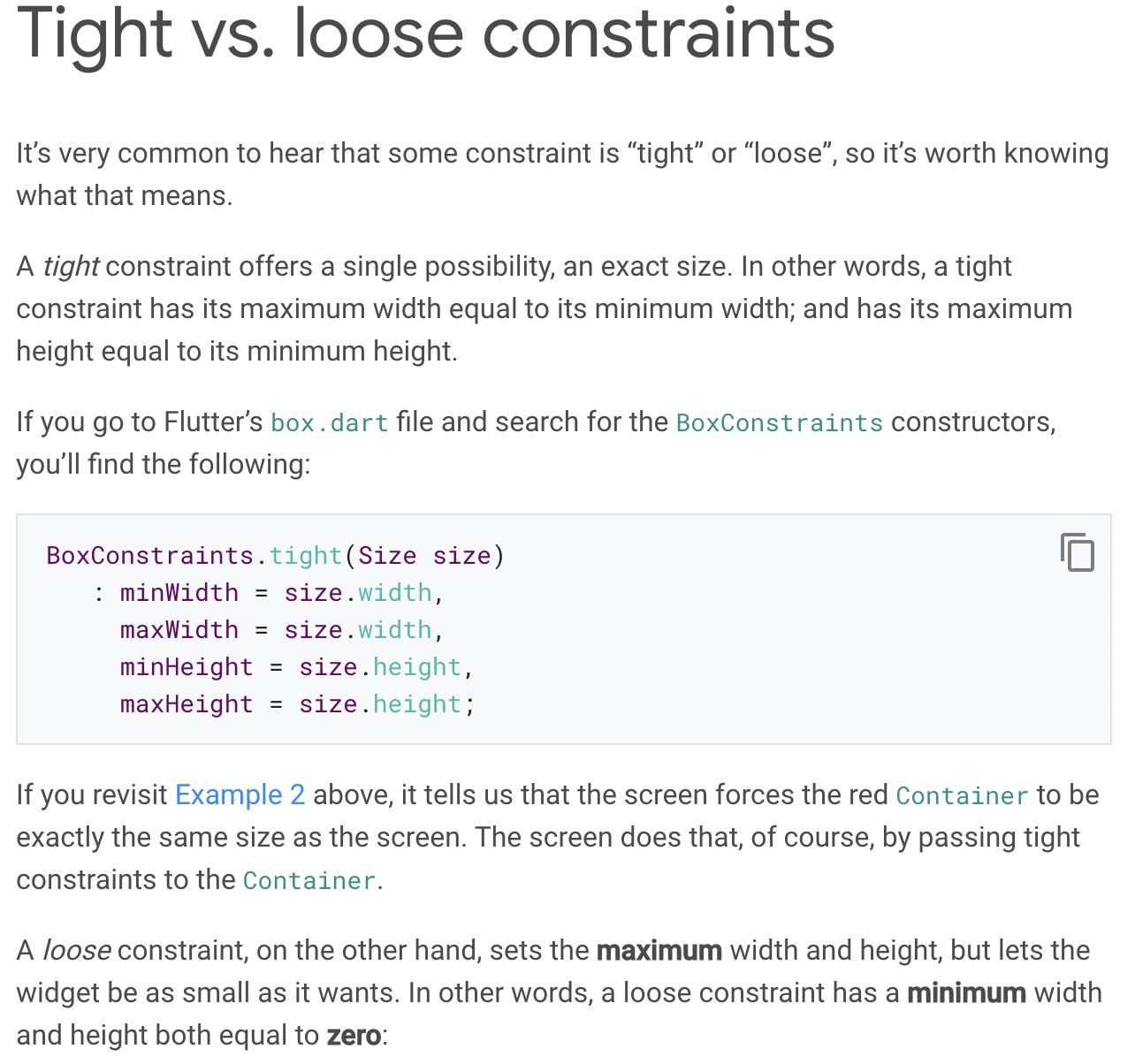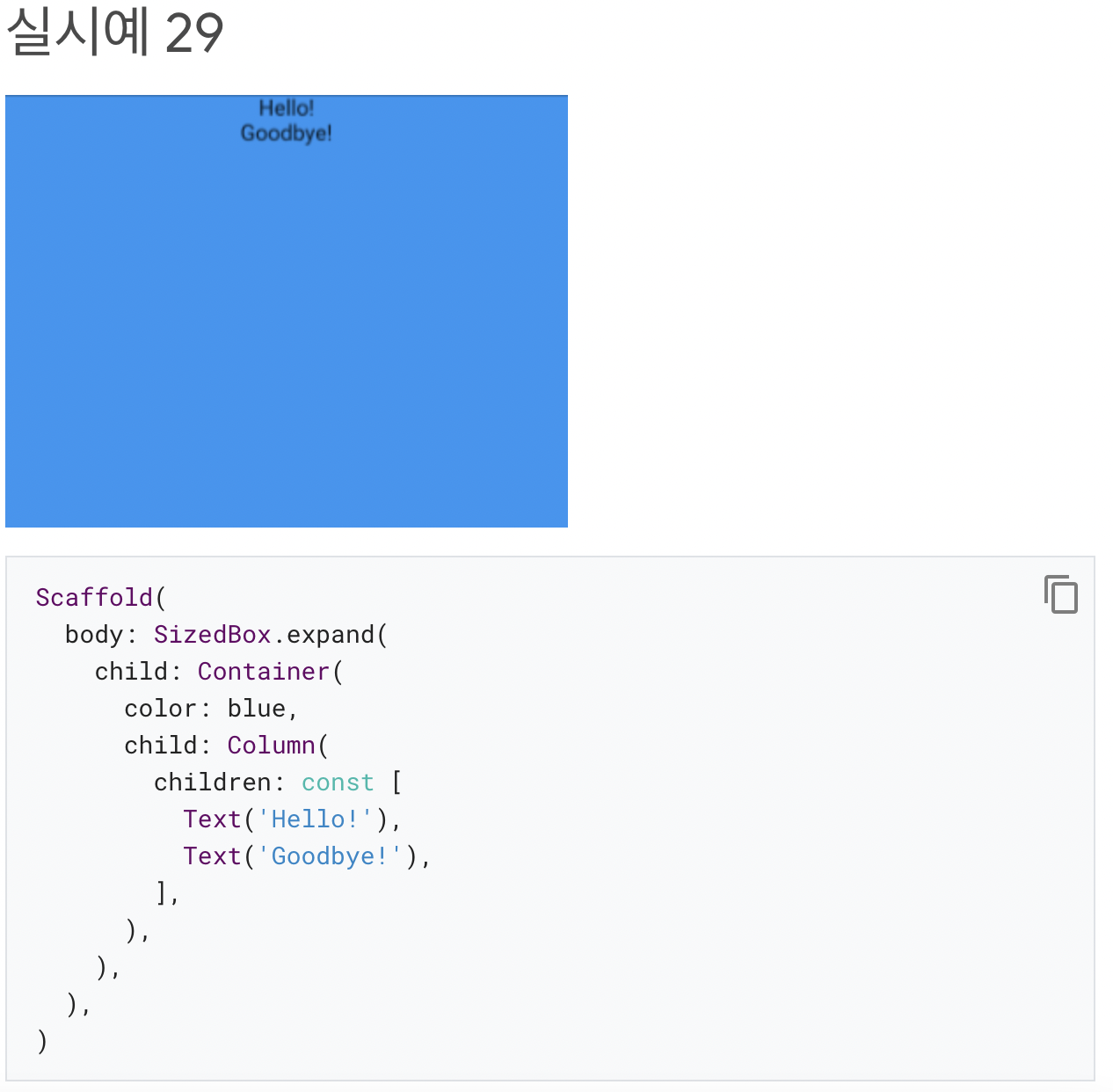 Flutter layout engine에는 몇가지 중요한 제한 사항이 있다(예시로 둔 레이아웃 규칙에 의해)