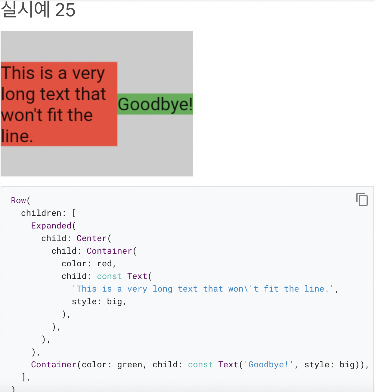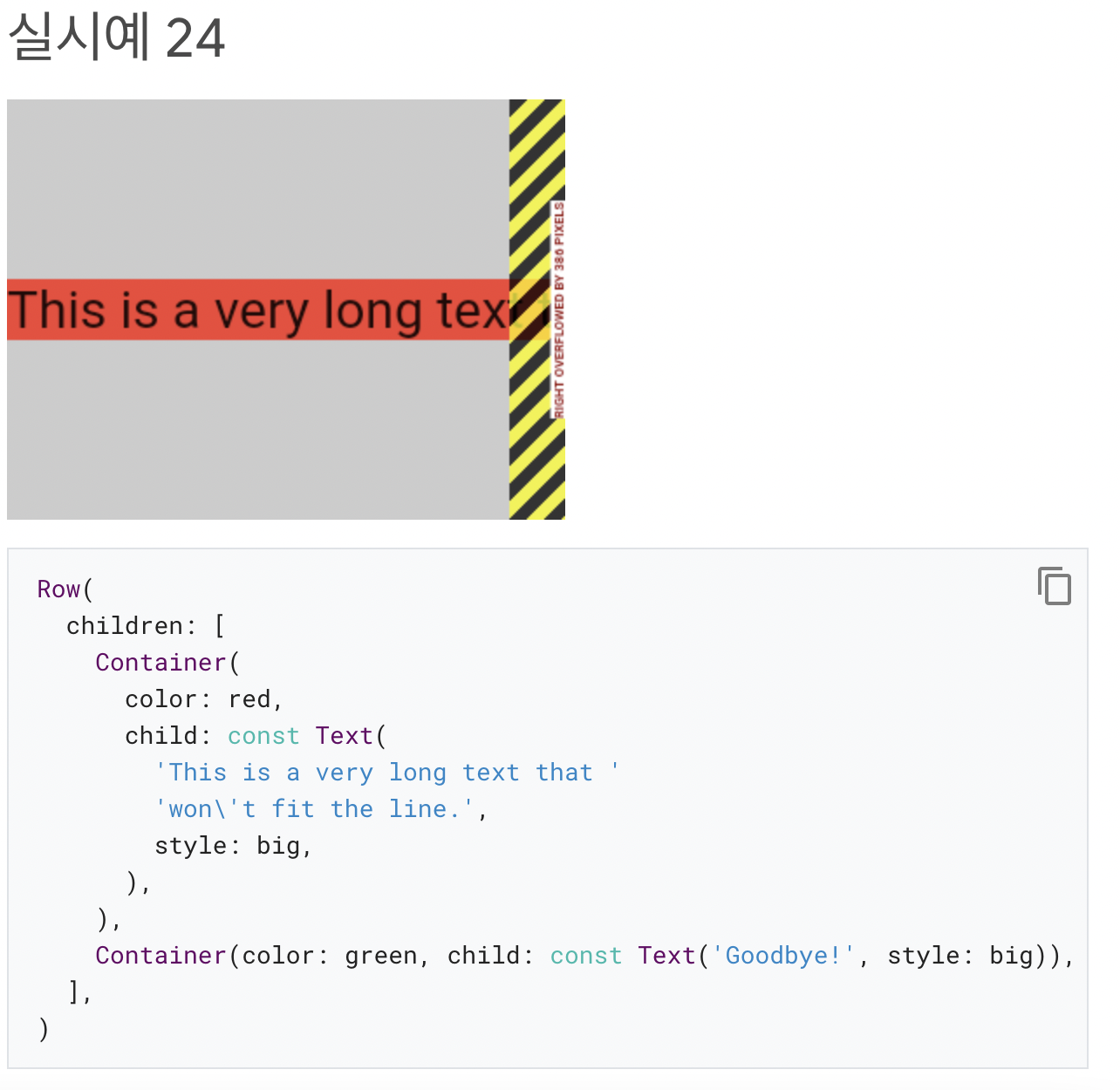 - Flutter는 무한한 크기를 렌더링할 수 없으므로 다음 메시지와 함께 오류가 발생합니다.`BoxConstraints forces an infinite width.`</b>|