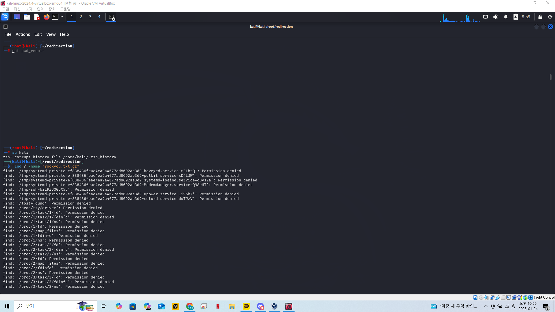 해당명령어는 / 최상위 경로에서 rockyou.txt.gz 라는 이름을 가진 파일을 찾겠다는 명령어이다.
