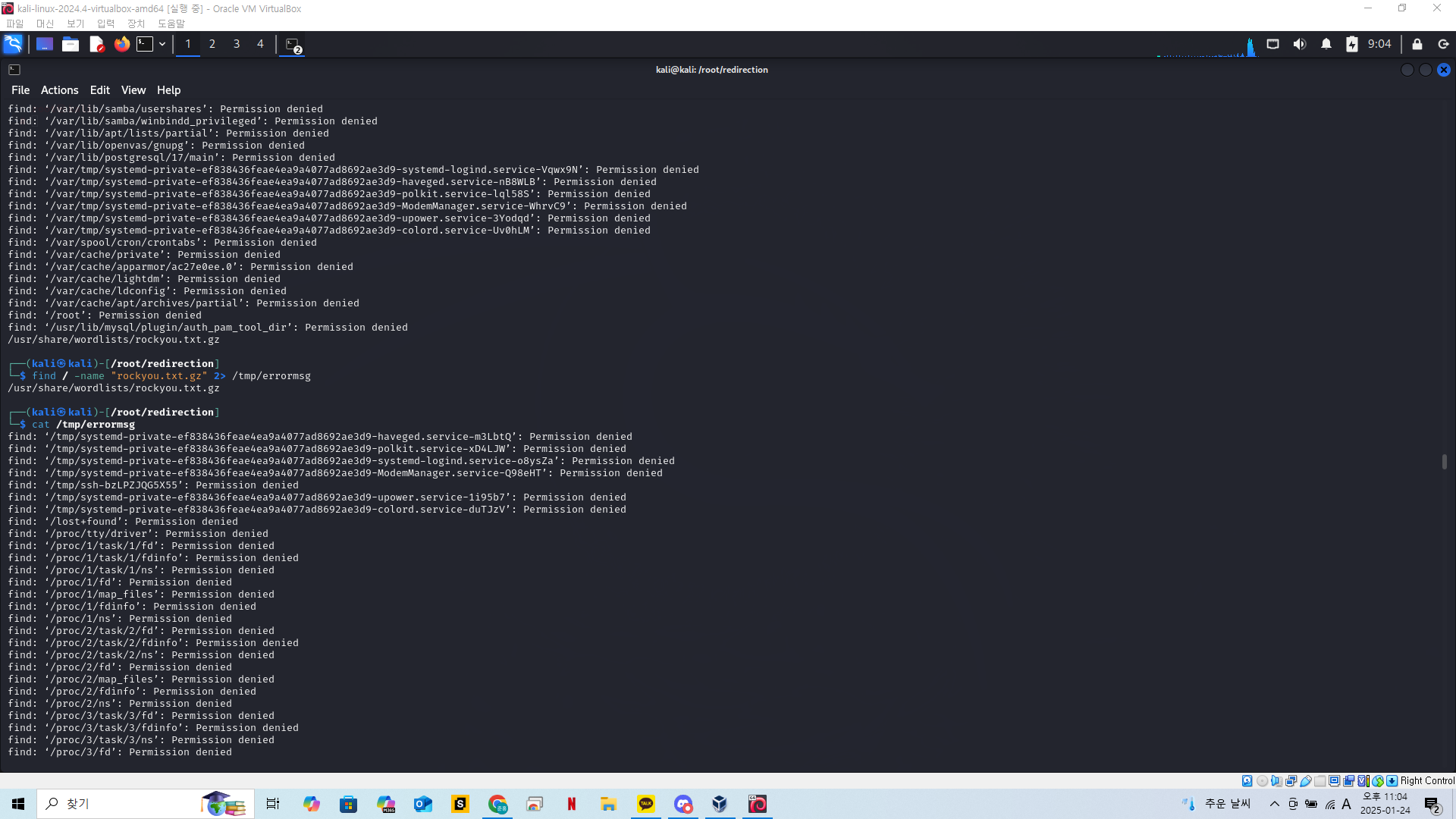 이렇게 redirection 을 통해 tmp폴더에 에러메세지를 넘기고 필요한 정보만 찾아보겠다.