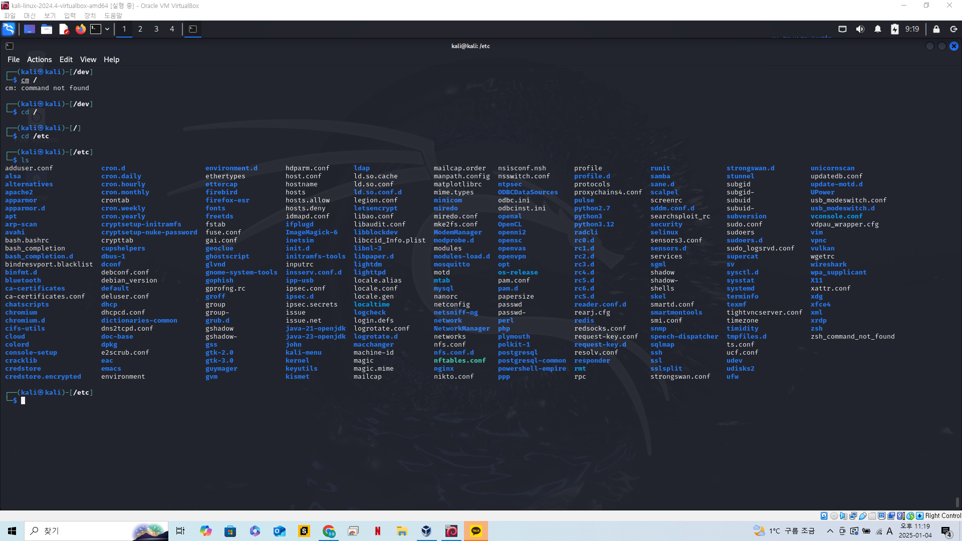 그 다음 디렉토리는 etc다