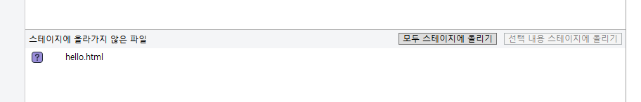 이걸 스테이지에 올려야 커밋할 수 있습니다. 모두 스테이지에 올리기 버튼을 클릭합니다.