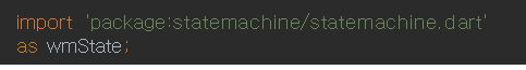 machine정의 할 때, statemachine패키지를 impor하면 Flutter의 statefulwidget과 이름 중복이 발생하여 as키워드로 이름을 변경해 준다.