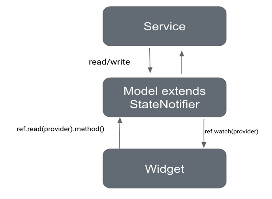 - Riverpod는 위젯을 통해 제공자에 액세스할 수 있도록 하며 ScopedReader, 빌드 메소드에 전달되고 최종적으로 ConsumerWidget클래스 를 통해 소비됩니다.