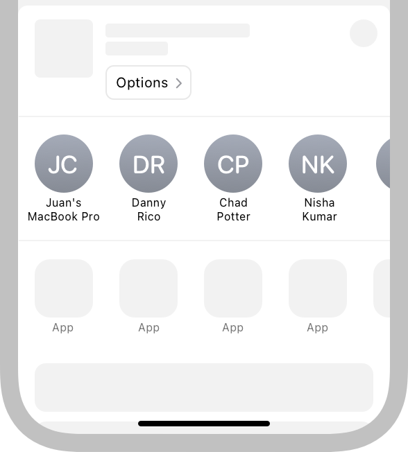 Share Extension은 SLComposeServiceViewController 클래스의 configurationItems 메서드를 사용해 사용자가 설정할 수 있는 구성 유형을 식별하는 SLComposeSheetConfigurationItem 인스턴스 배열을 반환합니다. 사용자가 configuration item을 탭하면, 해당 항목은 커스텀 뷰 컨트롤러를 표시하여 사용자가 구성을 수행할 수 있습니다.