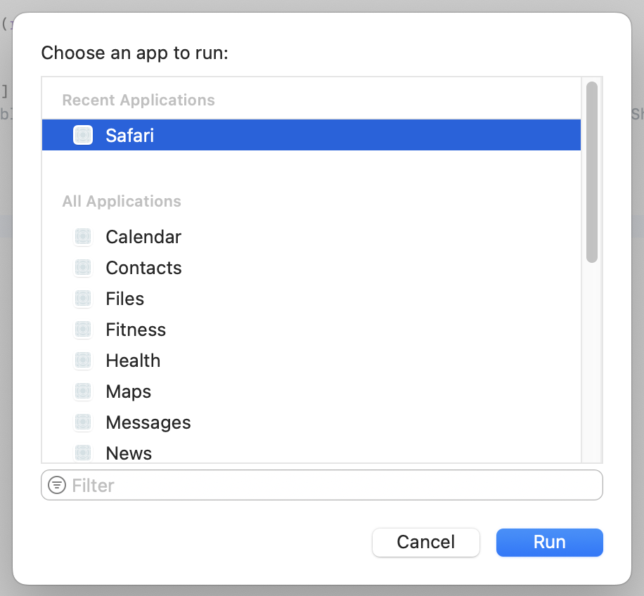 Share Extension을 만들었다면 위와 같이 실행시킬 타겟을 정할 수 있습니다.