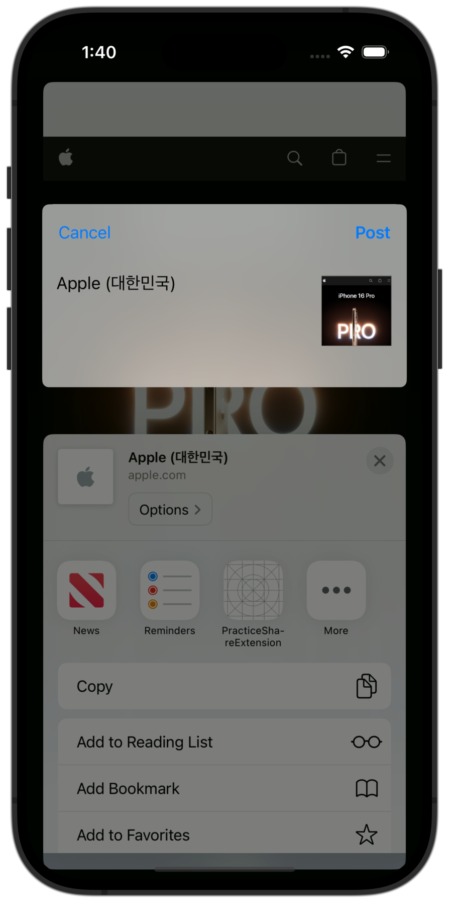 애플에서 말하는 Share Extension은 다음과 같습니다.