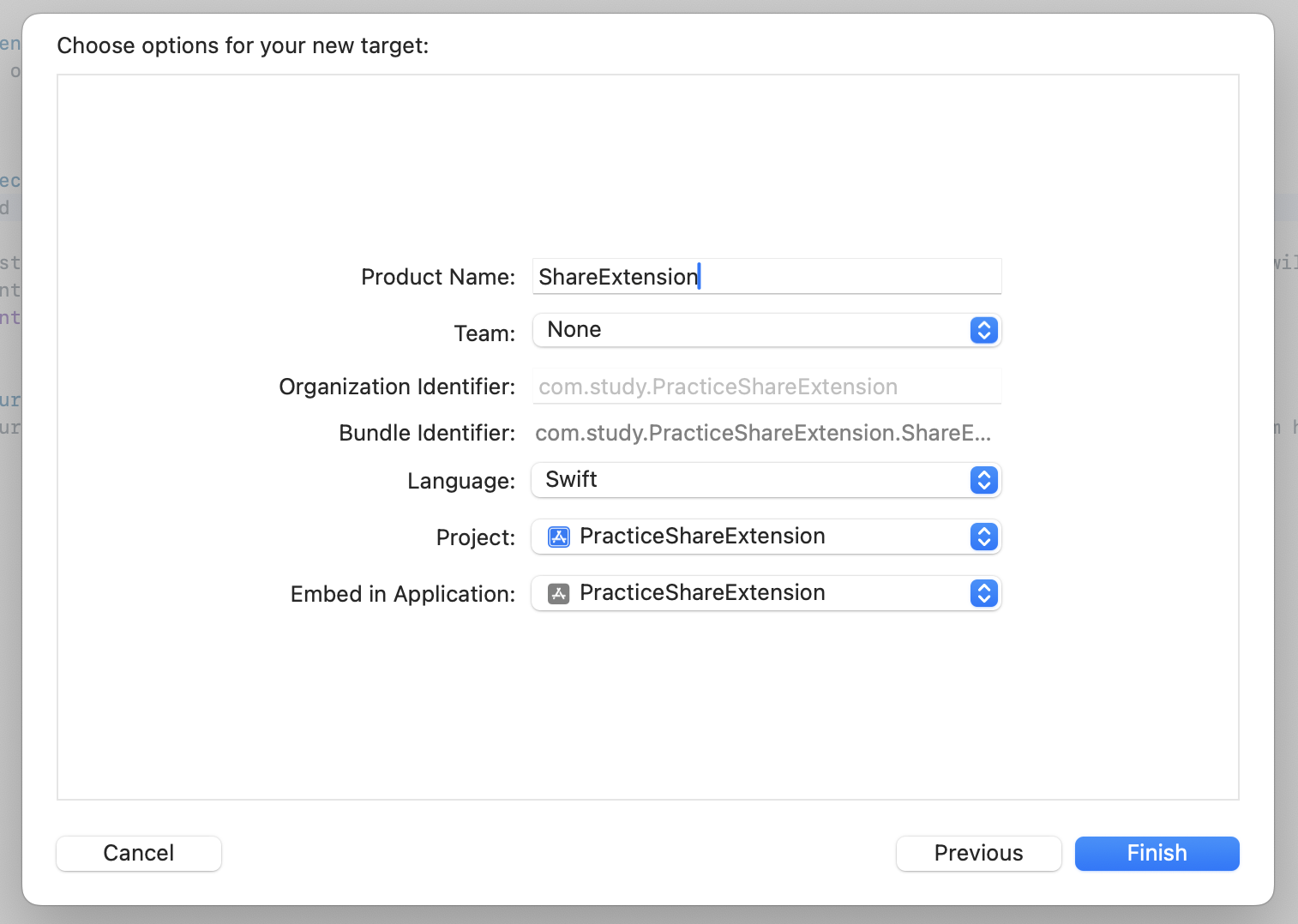 먼저 Share Extension을 생성하는 법은 다음과 같습니다.