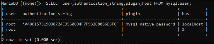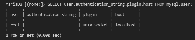 비밀번호 재지정을 통해 unix_socket >> mysql_native_password 로 변경** 비밀번호로 로그인이 될 경우 ** 1) $ sudo mysql -u root -p 2) mysql 비밀번호 입력 후 접속 3) MariaDB [(none)]> set password = password("새로운 비밀번호 입력"); 4) MariaDB [(none)]> SELECT user,authentication_string,plugin,host FROM mysql.user; #plugin 확인 5) $ sudo service mysql restart ** 비밀번호로 로그인이 안 될 경우 ** 1) $ sudo mysql -u root 2) MariaDB [(none)]> USE mysql; 3) MariaDB [(none)]> UPDATE user SET plugin='mysql_native_password' WHERE User='root'; 4) MariaDB [(none)]> FLUSH PRIVILEGES; 5) MariaDB [(none)]> exit; 6) $ sudo service mysql restart