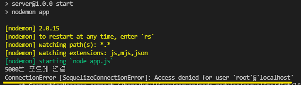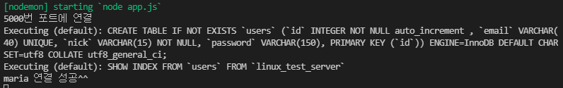 - 파악 : sequelize 에서 mariaDB 연동시 user에 대한 접근 관련한 문제로 보임