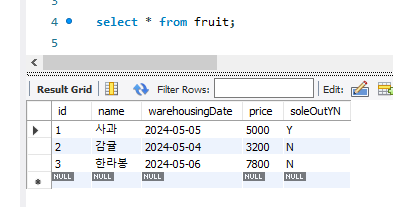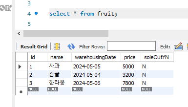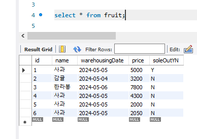 String sql = "UPDATE fruit SET soleOutYN = 'Y' WHERE id = ?";