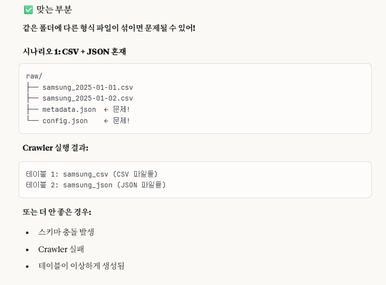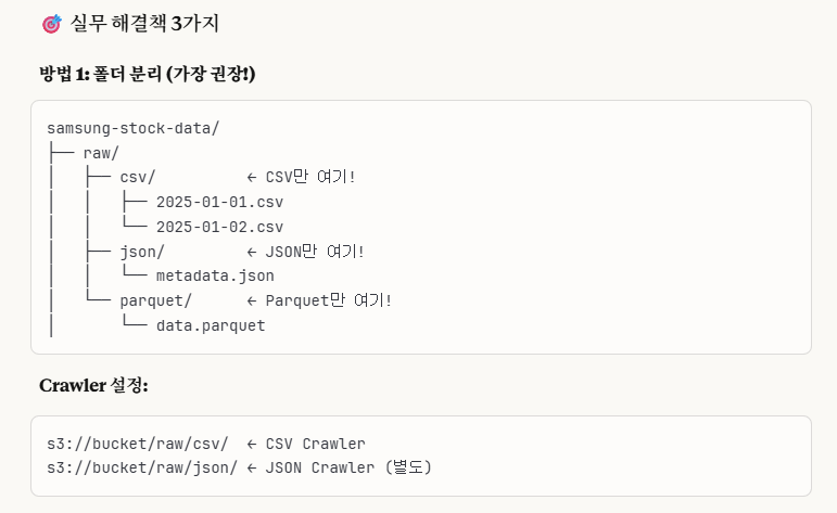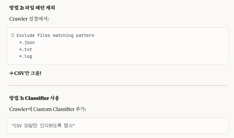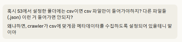 Glue Crawler가 자동으로 파일 형식을 감지해서 구분하지만, 혹시나 하는 오류에 대비해서 확실하게 처리하는 것을 추천합니다.