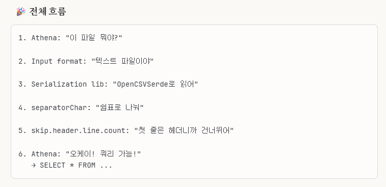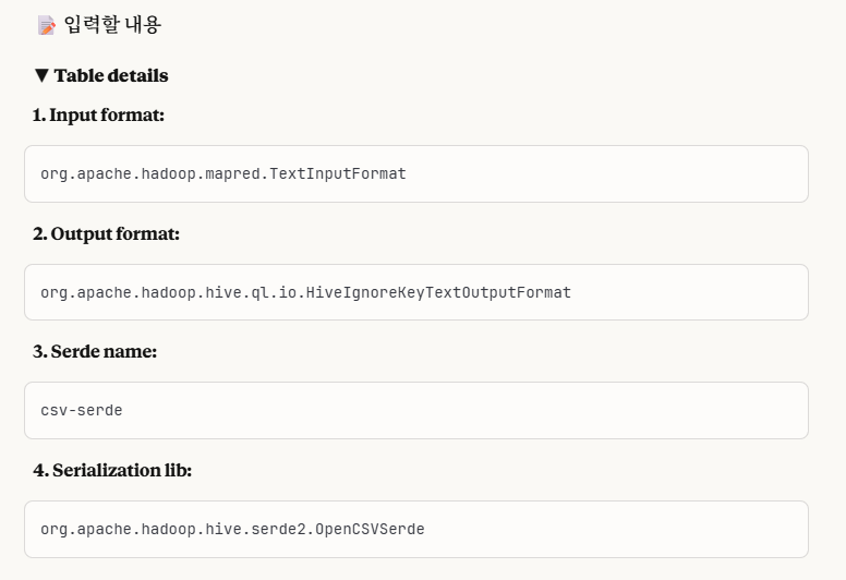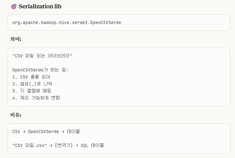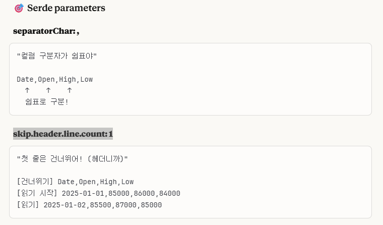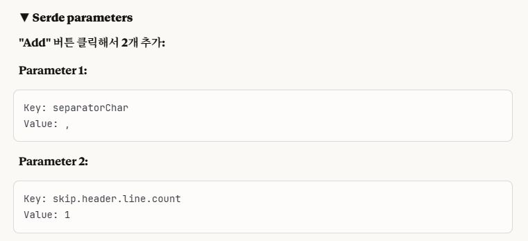 csv 파일은 문제가 없고, Serde Parameters 부분도 문제가 없었습니다.