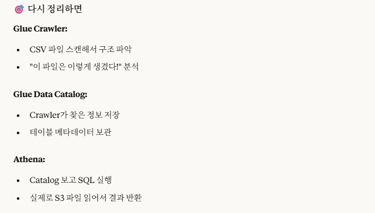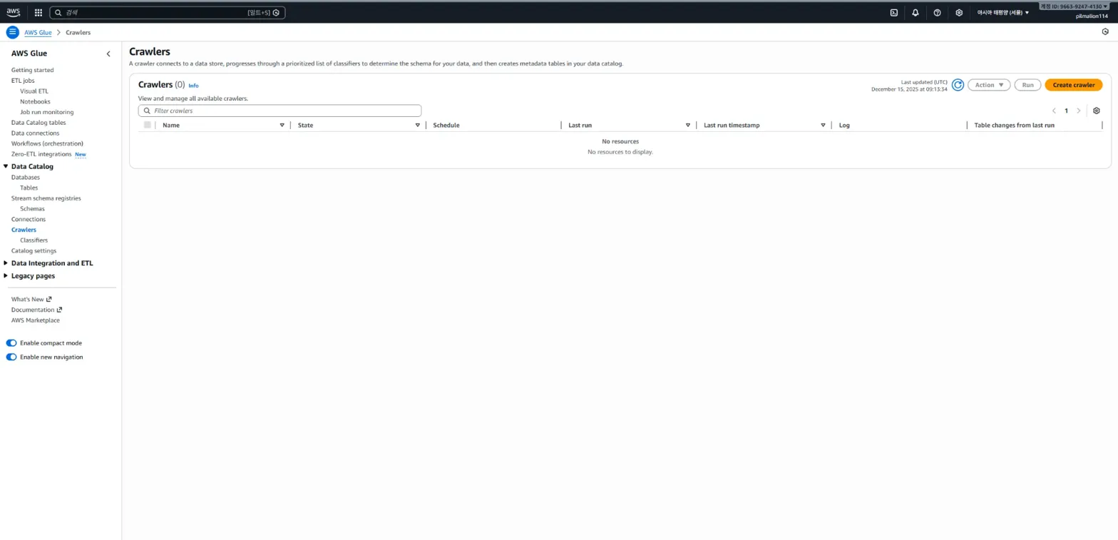*2. Glue Data Catalog: Crawler가 분석한 메타데이터를 저장하는 도서관(보관소)라고 이해하면 됩니다.