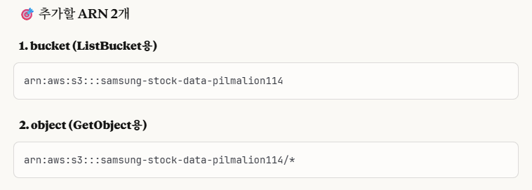 arn:aws:s3::: ...~ 이 경로에다가 해당 경로를 그대로 입력하면, 알아서 parsing해서 적용해줍니다.