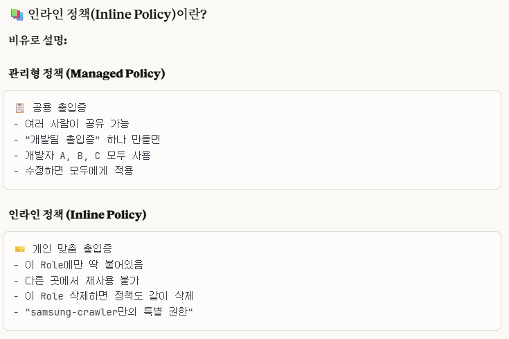 즉, 인라인 정책은 개별 맞춤 출입증(권한증)이라고 이해하면 됩니다.
