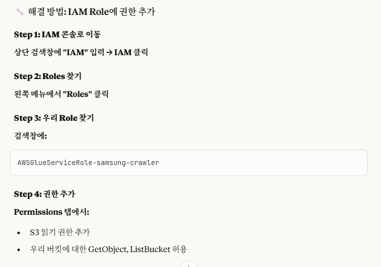 우리는 이렇게 IAM 콘솔로 이동해서 해당 Role에서 권한을 추가해야합니다.