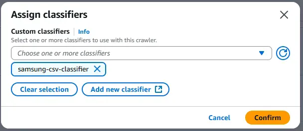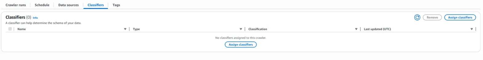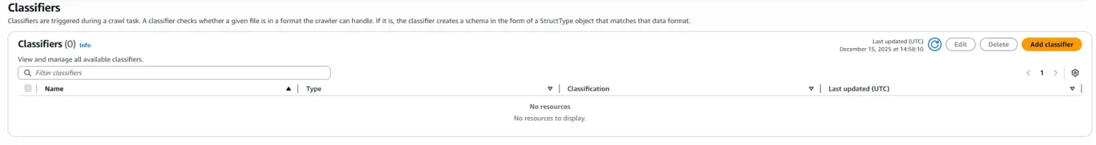 Glue 콘솔로 돌아와서, classifier 탭에 들어갑니다.