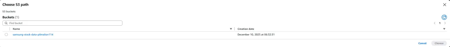 S3 path는 제가 가져오고 싶은 경로를 작성하면 됩니다.(또는 'Browse S3' 버튼으로 정하기)