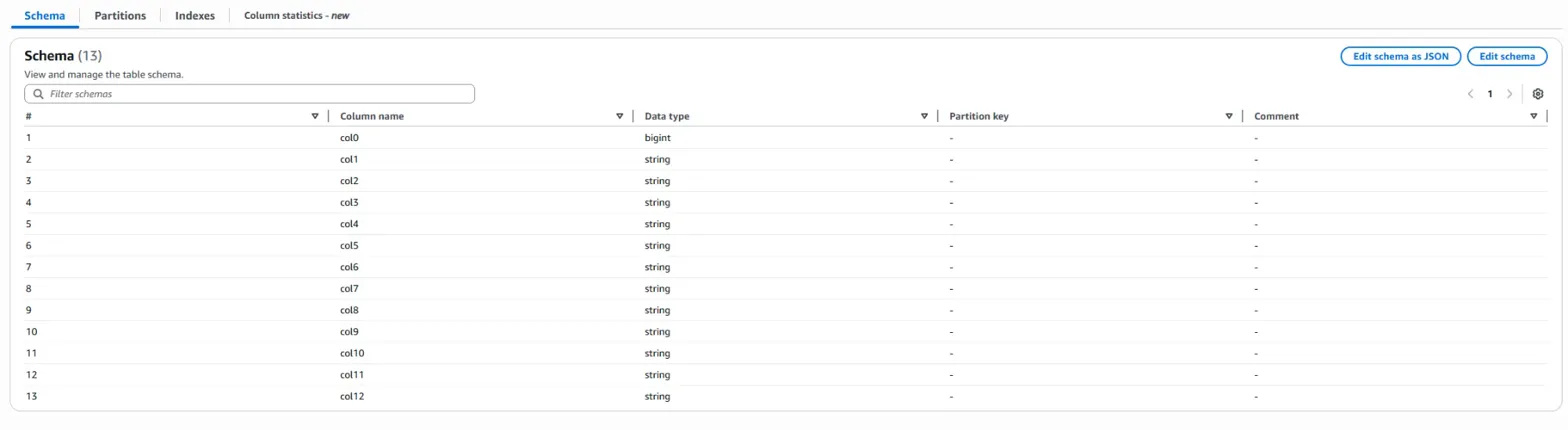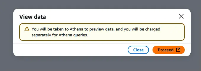 'View Data'에 있는 'Table Data' 파란색 링크를 눌러서 Athena에서 직접 확인을 해보았는데도 없었습니다.