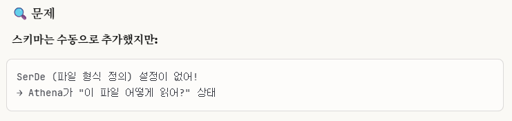 아마 제 추측으로는, Glue & Athena 목적은 대용량 데이터를 처리하기 위함이라서 그렇게 설정한 거 같습니다.