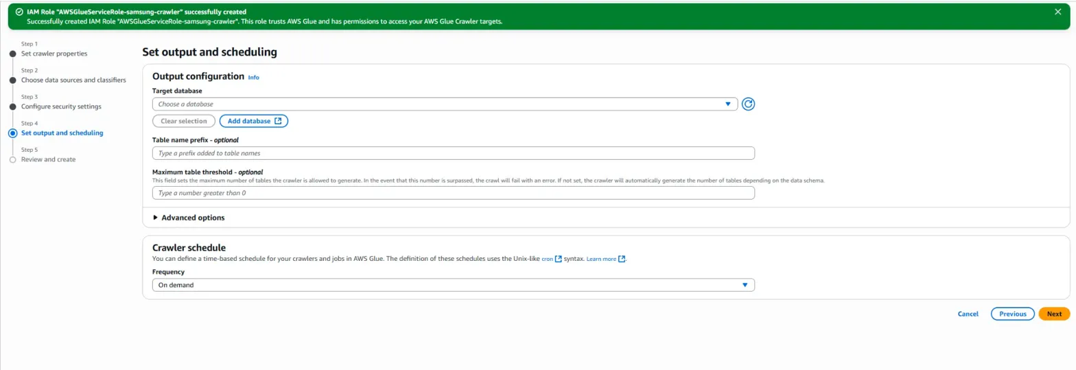 여기에는 아직 우리는 Glue 테이블이 없으므로 'Not yet'으로 설정합니다.