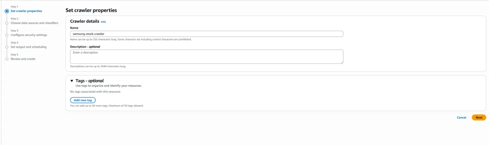*1. Glue Crawler: AWS Glue에 있는 crawler는 해당 파일의 메타데이터를 분석하는 역할을 합니다.