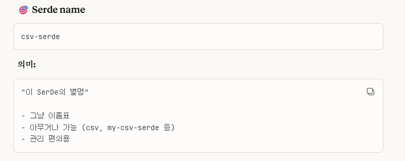 -> 그러면 Serde Parameter 설정은 알아서 잘 해준다. 우리가 수동으로 직접 작성할 필요가 없다.(오히려 오류 발생 가능성도 ↑)